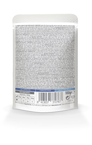 ANALYTISCHE BESTANDDELEN: ruw eiwit 10,00%, ruw vet 7,25%, ruwe celstof 1,00%, ruwe as 1,60%, vocht 80,00%. Metaboliseerbare energie 103 kcal/100g.