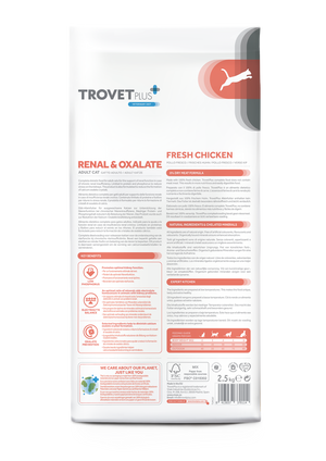 Complete dieetvoeding voor volwassen katten voor de ondersteuning van de nierfunctie bij chronische nierinsufficiëntie en de vorming van calciumoxalaatkristallen te verminderen.