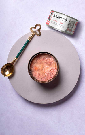 Houdt uw kat van de smaak van vis? Deze 100% natuurlijke voeding zit boordevol premium skipjack tonijnfilet en heerlijke stukjes krab. Het is zo aantrekkelijk dat u er zelf van zou willen proeven. Deze aanvullende kattenvoeding is bedoeld als tussendoortje, dat af en toe gegeven kan worden naast de droogvoeding van uw kat. Op deze manier creëert u een gezond en uitgebalanceerd dieet. Tonijn is licht verteerbaar, bevat veel eiwitten en is een bron van natuurlijke taurine, wat zorgt voor een goede werking van het hart en de ogen van uw kat. Er zitten ook omega-3 vetzuren in voor een gezonde huid en stralende vacht. Natuurlijke voeding voor vrolijke en gezonde katten – dat is Amanova.