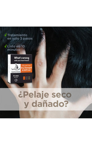 Este kit "Todo en Uno" tiene todo lo que necesitas para limpiar, nutrir y suavizar el pelo seco o dañado de tu mascota ocasionado por el envejecimiento, los cambios estacionales u otros factores.