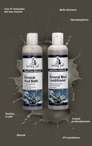 Su exclusiva fórmula hipoalergénica está elaborada con barro del Mar Muerto*, rico en minerales, con aceites de romero y árbol del té, que suavizan y nutren la piel de tu mascota y mejoran el brillo de su pelaje.