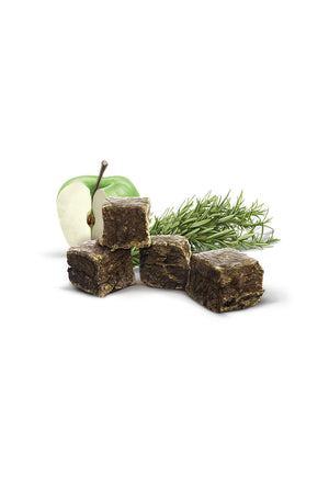 Wenn es Zeit ist, deinem vierbeinigen Begleiter eine Belohnung zu gönnen, zögere nicht, ihm diese leckeren Leckerlis anzubieten. Unsere Rezeptur besteht aus frischem Hühnchen von bester Qualität, reich an hochwertigen Proteinen und langsam gekocht, um seinen unwiderstehlichen Geschmack und hervorragende Nährstoffe zu bewahren. Außerdem verwenden wir weder Fleischmehl noch getrocknetes Fleisch, sondern fügen andere natürliche Zutaten wie Apfel und Rosmarin hinzu, die einen zusätzlichen Geschmack verleihen und antioxidative Eigenschaften haben. Diese köstlichen Snacks sind die perfekte gelegentliche Belohnung für deinen pelzigen Freund. Sicherlich wird dein Hund vor Freude springen, sobald er sie probiert hat, und nach mehr verlangen!