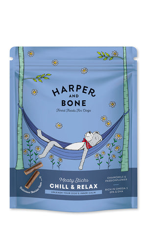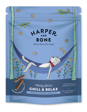 Chill & RelaxDespués de un ajetreado día explorando el parque o disfrutando de largos paseos por el campo, a nuestros amigos peludos, Harper and Bone, les encanta relajarse junto a un cuenco lleno de los deliciosos snacks ibéricos para mascotas, y en particular, no pueden resistirse a los irresistibles “Meaty Sticks”.